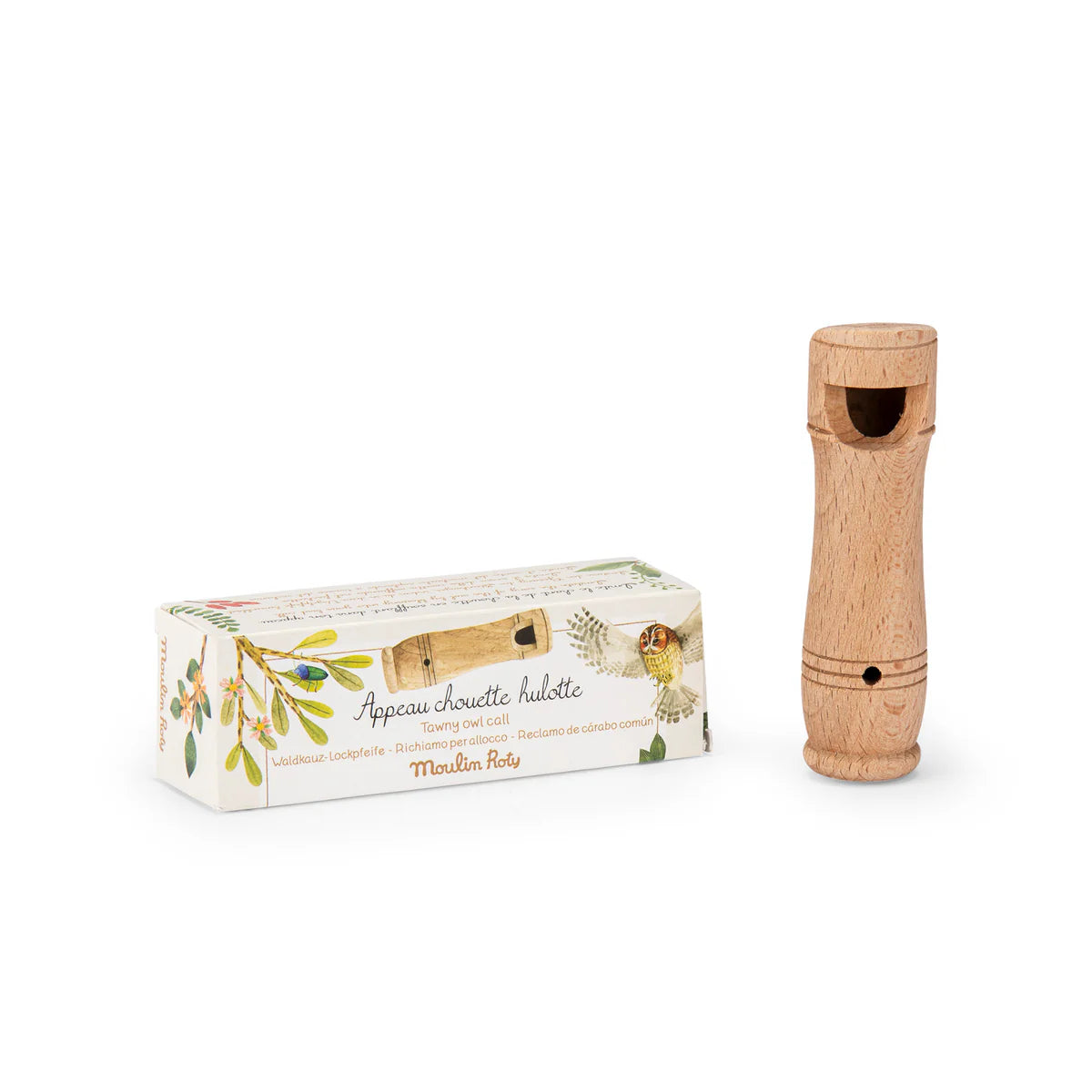 Imita il tipico verso dell’allocco soffiando nel richiamo per uccelli. Questo strumento educativo per scoprire la natura è tascabile, quindi facile da portare con sé. Un modo speciale per avvicinarsi alla natura e “parlare” con gli uccelli.
