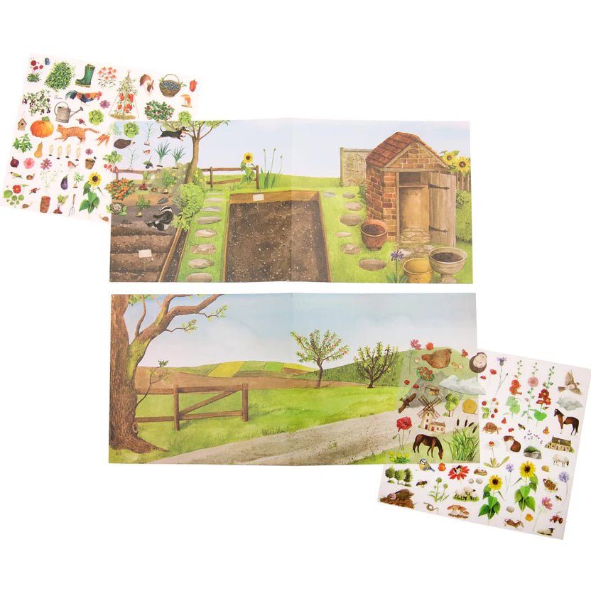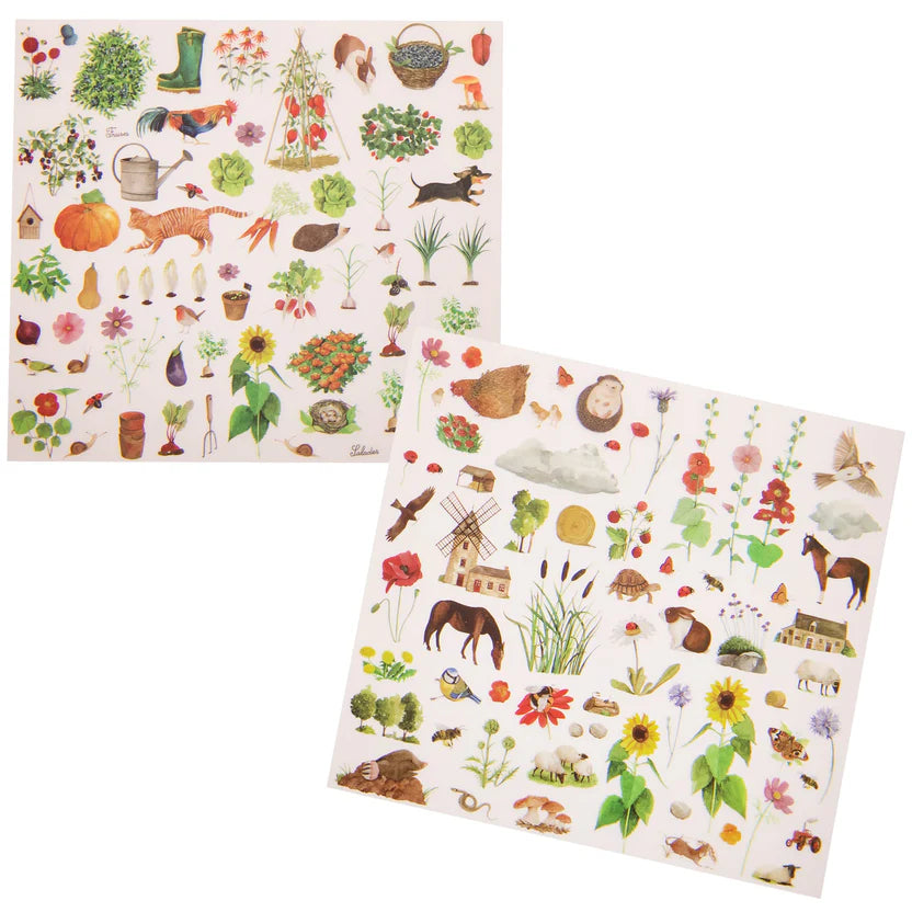 2 grandi scenari illustrati sull'affascinante tema del giardiniere con tante decalcomanie.