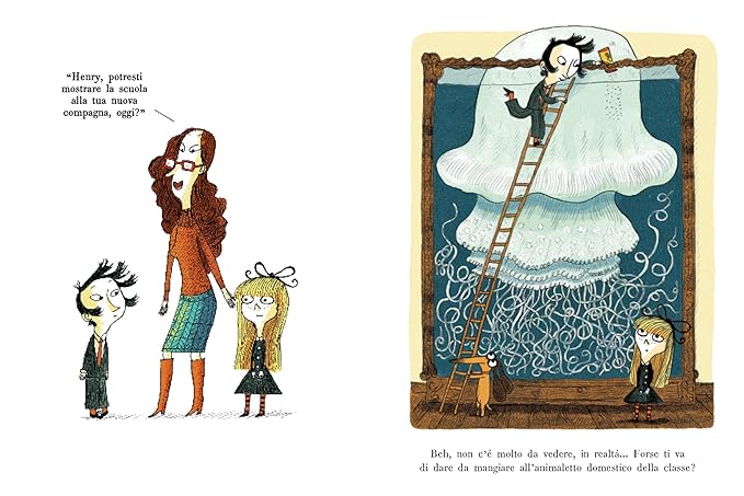Henry mostra la sua scuola alla sua nuova compagna di classe e ha inizio un giro vorticoso attraverso aule e corridoi: invenzioni misteriose si nascondono nel laboratorio di scienze, la biblioteca è un labirinto, la mensa richiede abilità ninja e gli insegnanti possono essere dei veri mostri! Ma è reale questa incredibile scuola? O c'è in serbo una sorpresa ancora più oltraggiosa? Il celebre team composto da Davide Calì e Benjamin Chaud, il duo del bestseller "Non ho fatto i compiti perché...", è tornato con un'altra spassosissima e inedita storia su verità, bugie e… scuola! Parole e illustrazioni si intrecciano in un ritmo fantastico che coinvolge e diverte lettori piccoli e grandi. Età di lettura: da 6 anni.